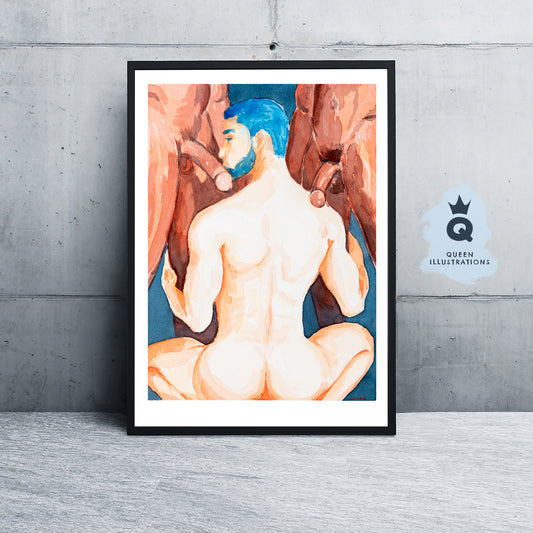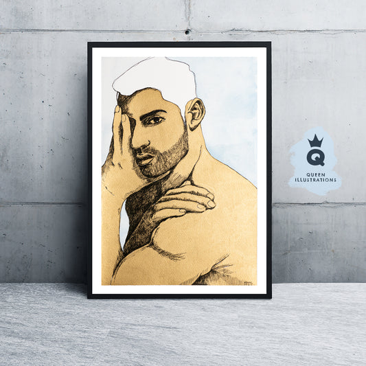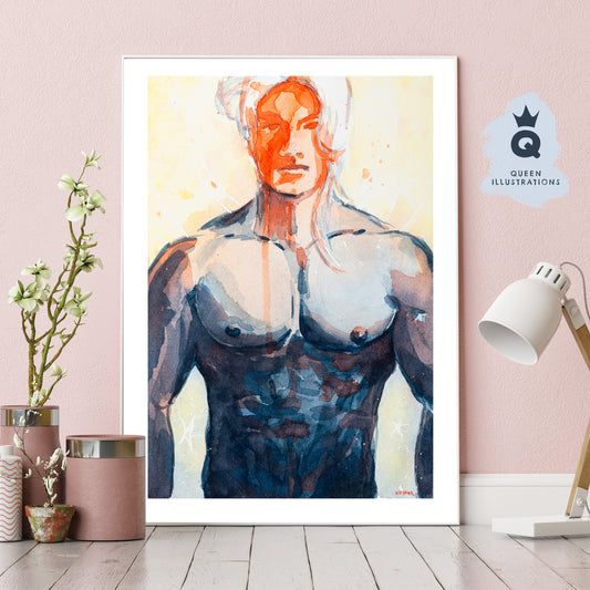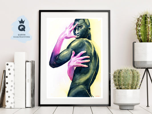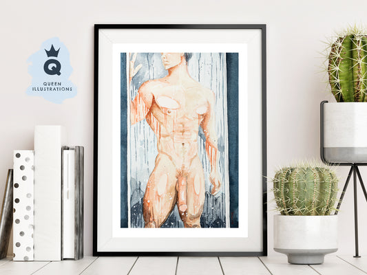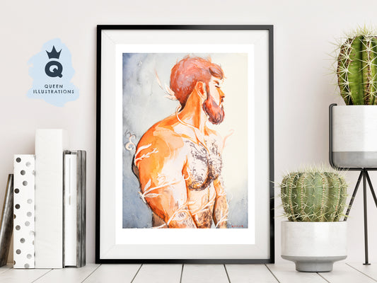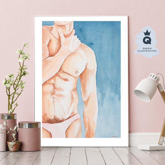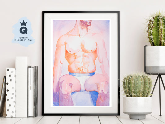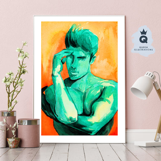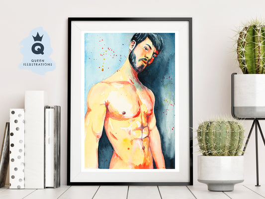 "HOT GUY", watercolour painting - Homoerotic Art Print