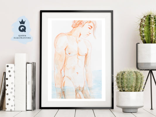 "SELFIE 4" naked bathroom selfie watercolour