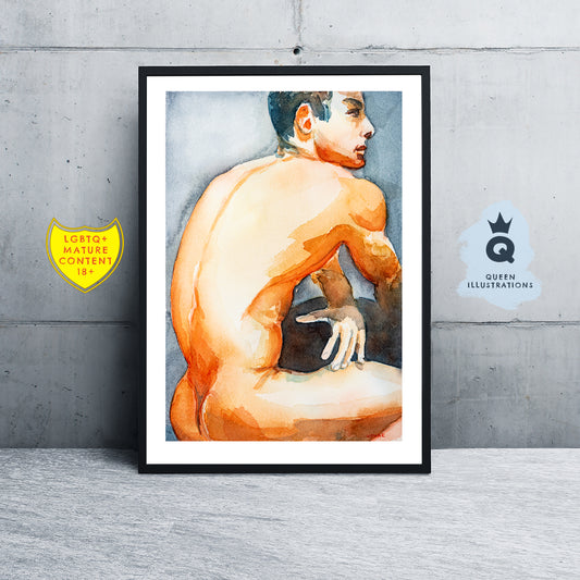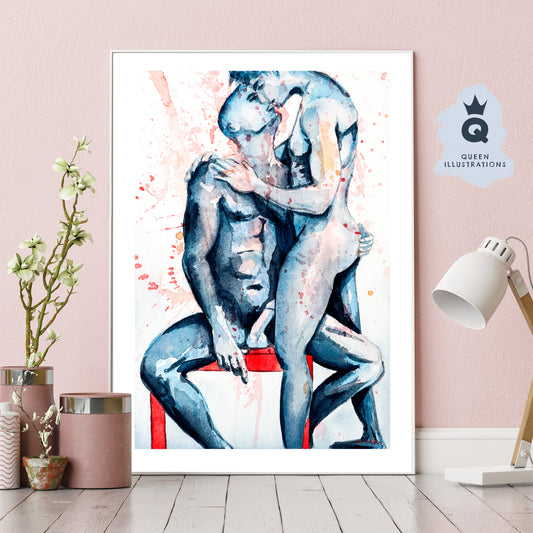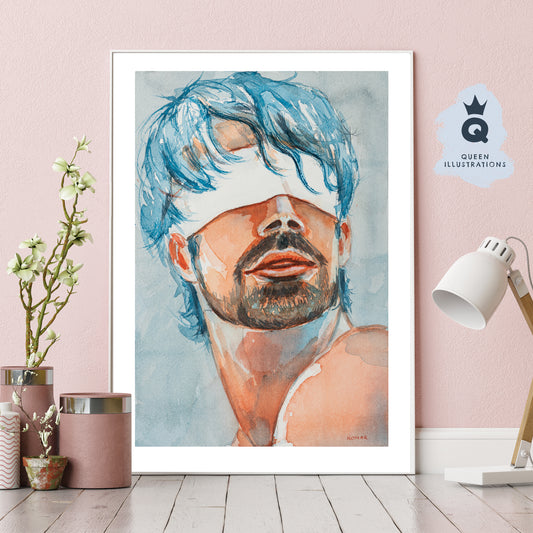 "BLINDFOLD"- Gay watercolour art print