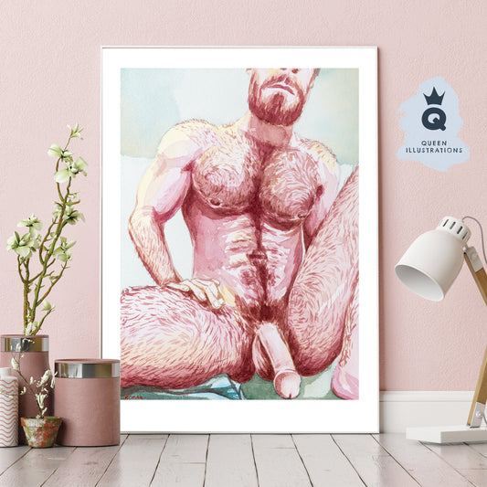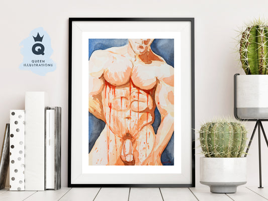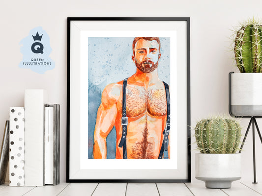 "BRACES" sexy topless man, art print