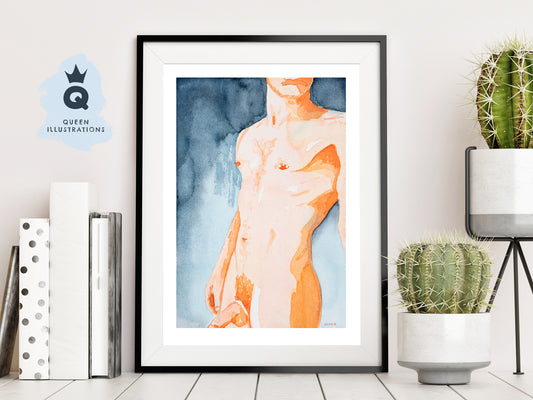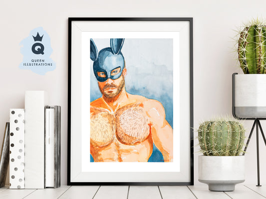 "BUNNY" naked man torso. gay art print