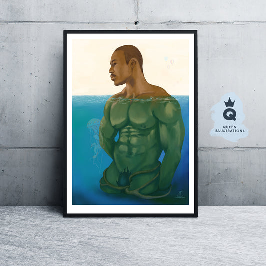 "NUDE IN THE SEA" Gay Art Print