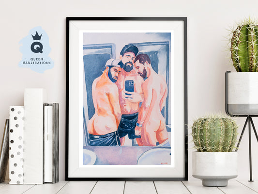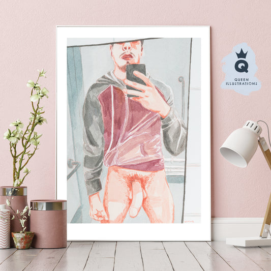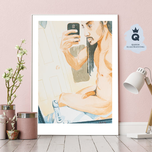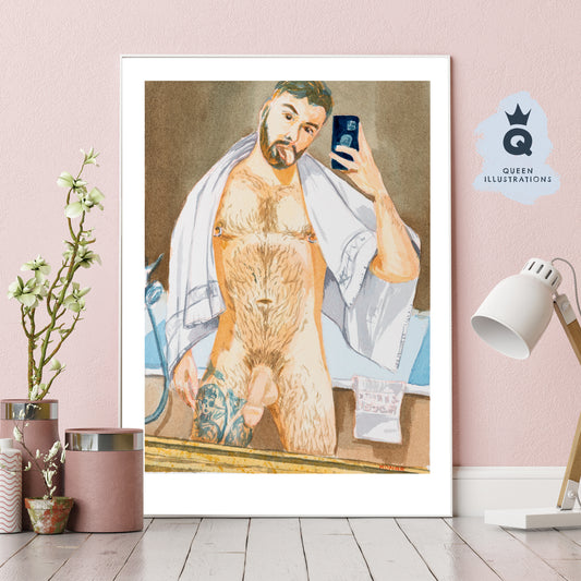 "SELFIE 3" naked bathroom selfie art print