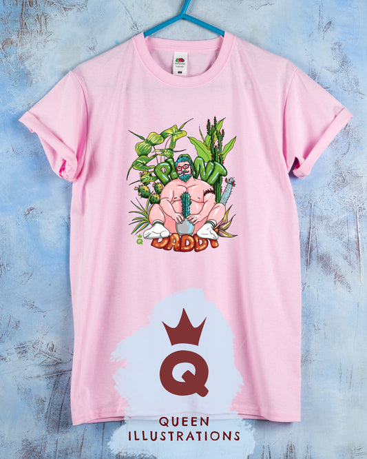 • "Body Positive Plant Daddy" in pink, gay T-shirt