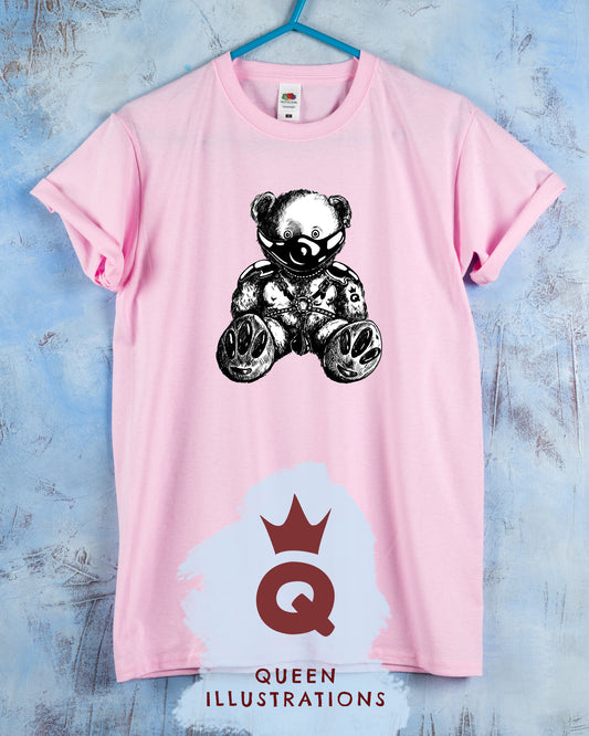 LEATHER BEAR - on pink, pure cotton T-shirt