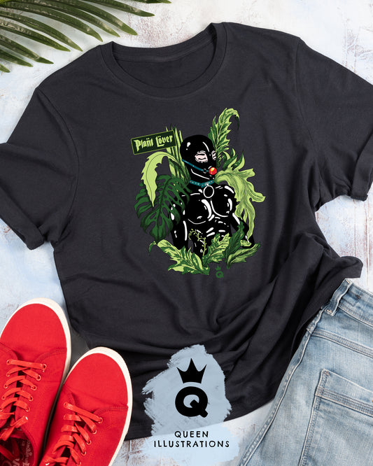 • Pant daddy, plant parent, plant mama, kinky plant lover dressed in latex suit surrounded by plants, sexy gay T-Shirt for a plant lover, hot latex fetish T-Shirt for a gift