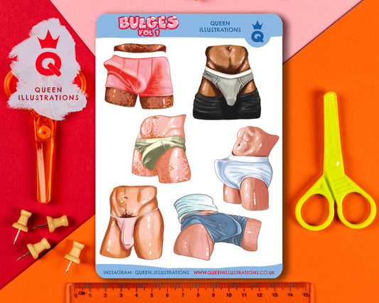 BULGES sticker sheet vol 1, waterproof vinyl gay stickers