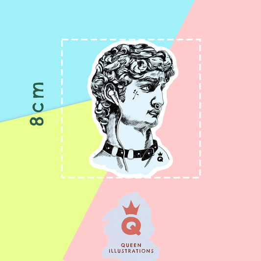 Michelangelo`s David holographic waterproof vinyl sticker, 8cm tall.