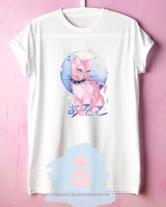 PUSSY in Japanese, gay kawaii T-shirt, cute kitten, perfect for pride or as gift